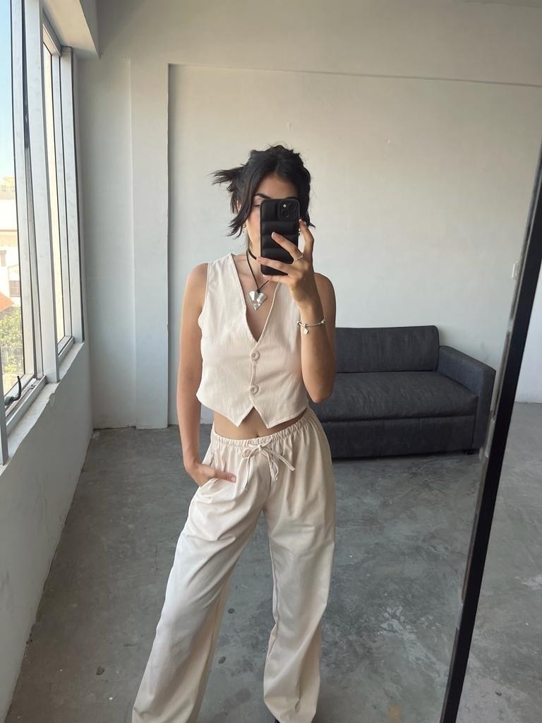 Palazzo confeccionado en lino, del talle 0 al 2, seria como del talle 1 al 3.